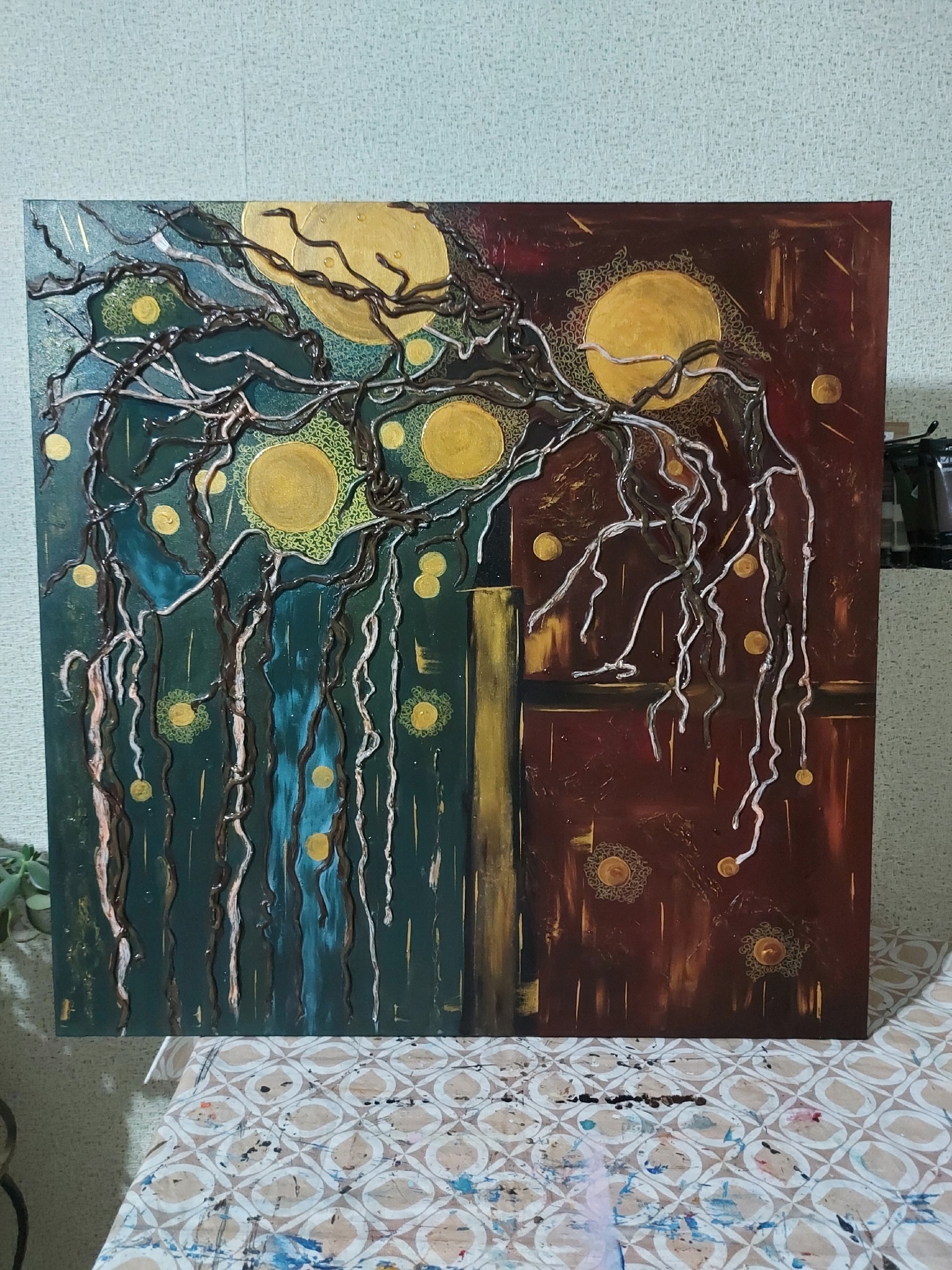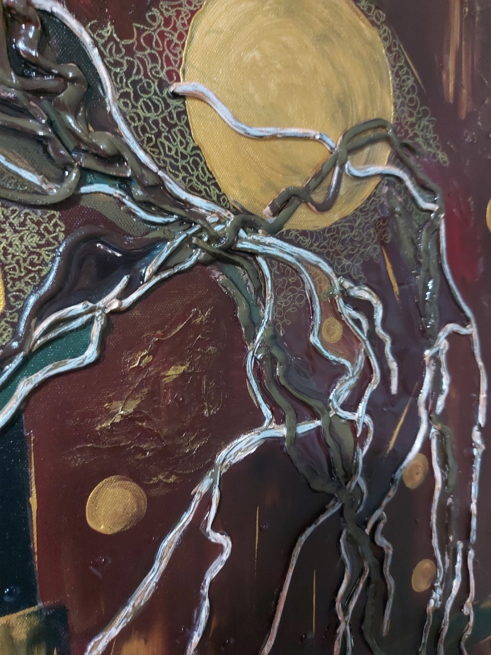 этой картине я изобразила темные корни старшего поколения, которые тесно