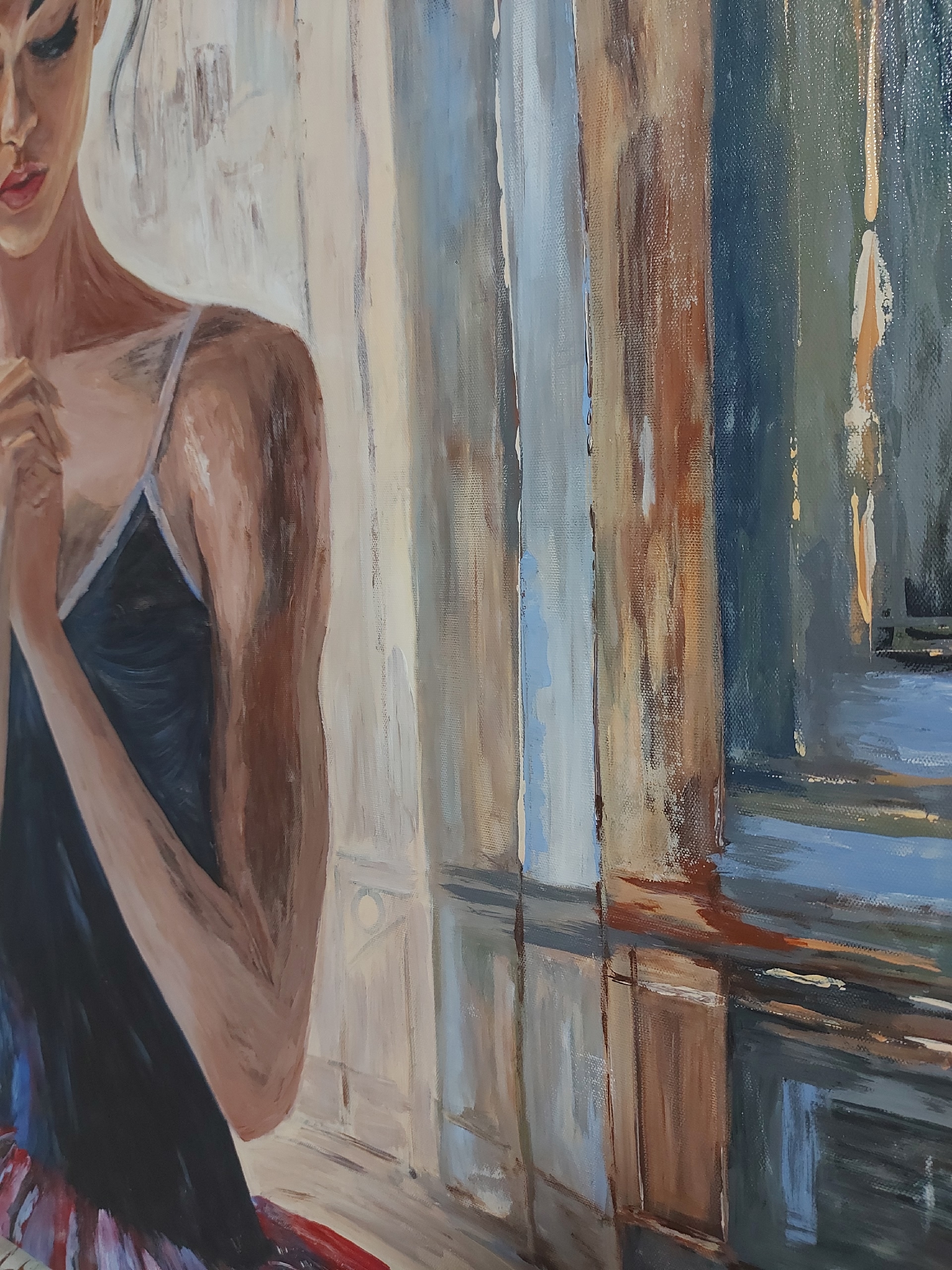 anticipation and grace with this stunning painting! The 100x100 cm canvas