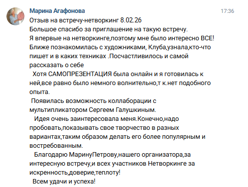 И у нас уже создалась коллаборация между Мариной Агафоновой и Сергеем Галушкиным, которые представят свою совместную работу ближе к 8 марта) Следующий нетворкинг пройдет у нас 14 февраля в 17-00