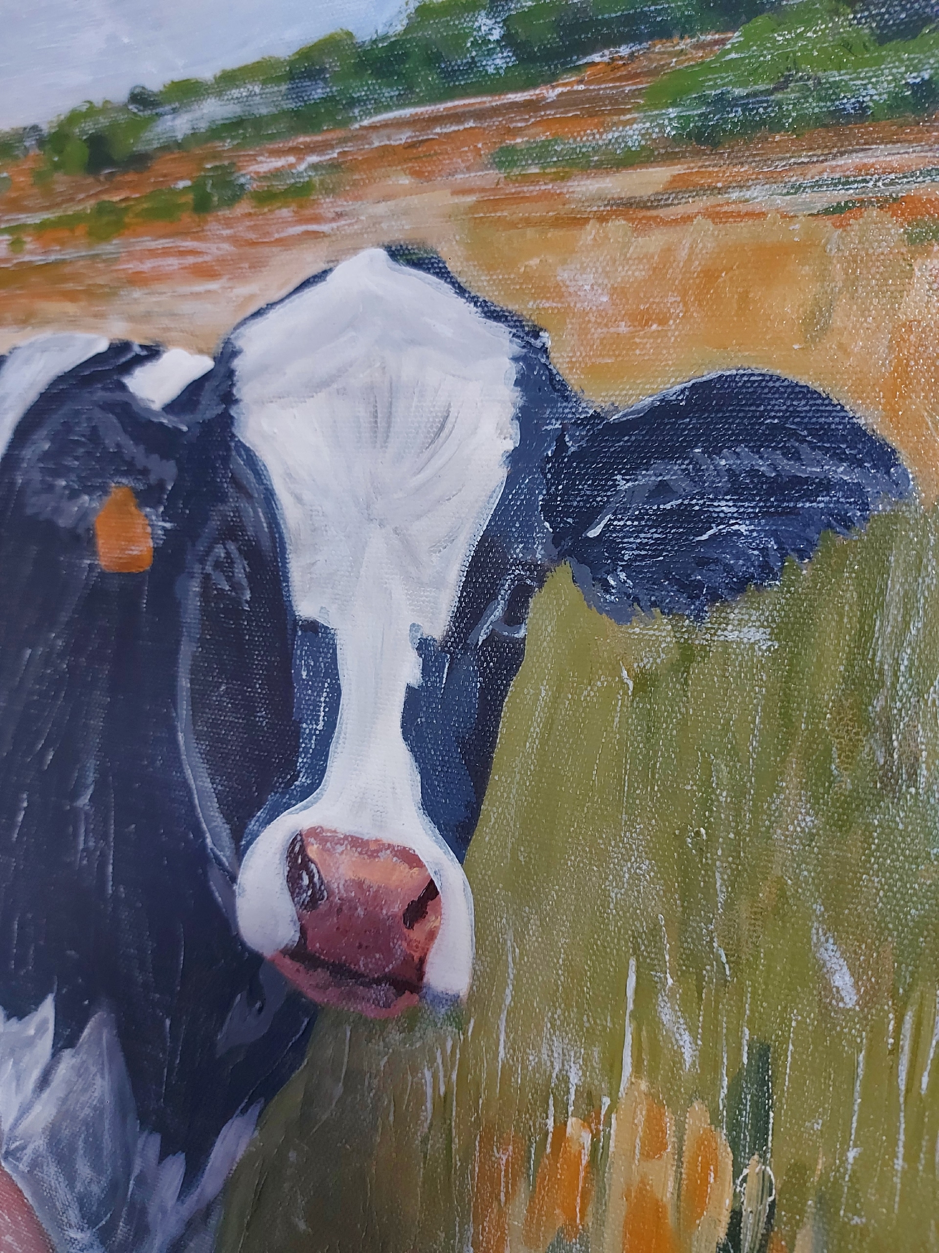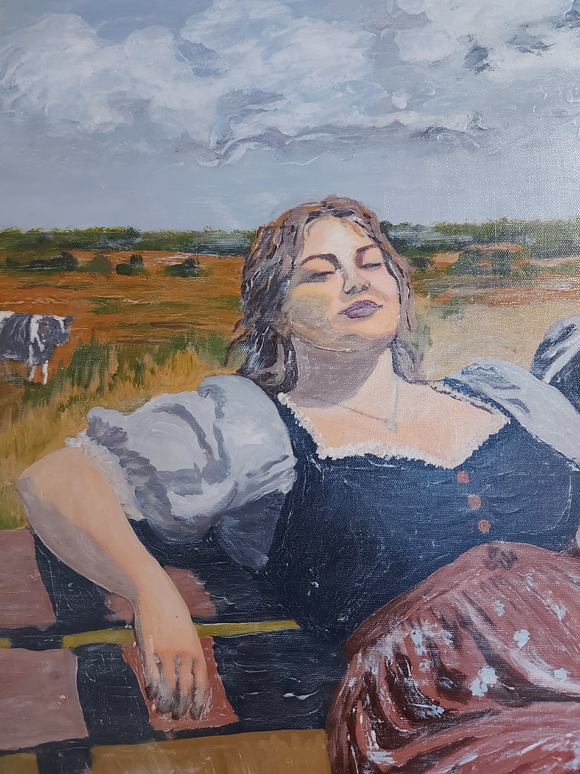 одна корова, что добавляет сцене живости и подчёркивает сельский колорит.