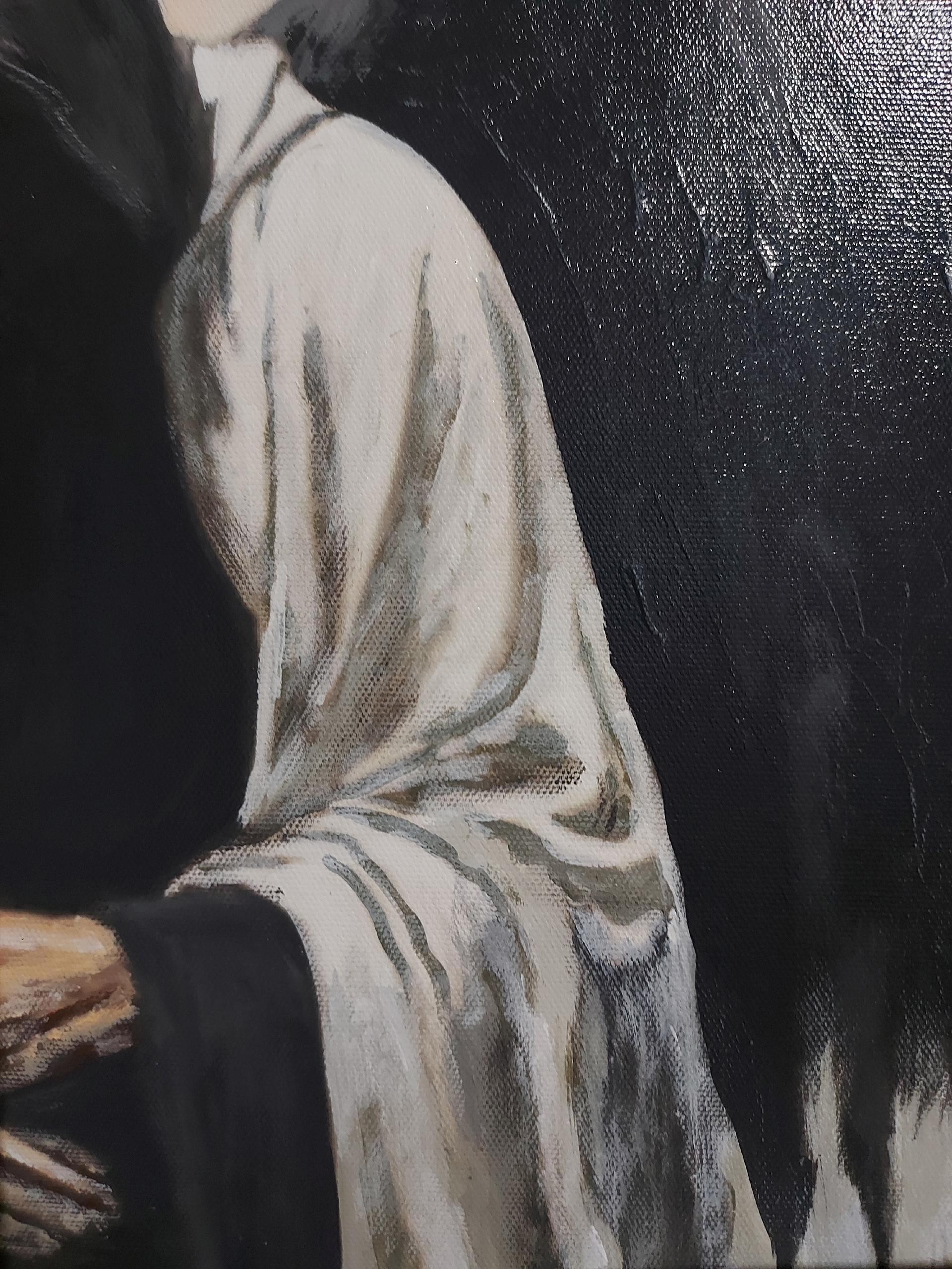белоснежной тканью, символизирующей чистоту, надежду или внутреннюю борьбу.